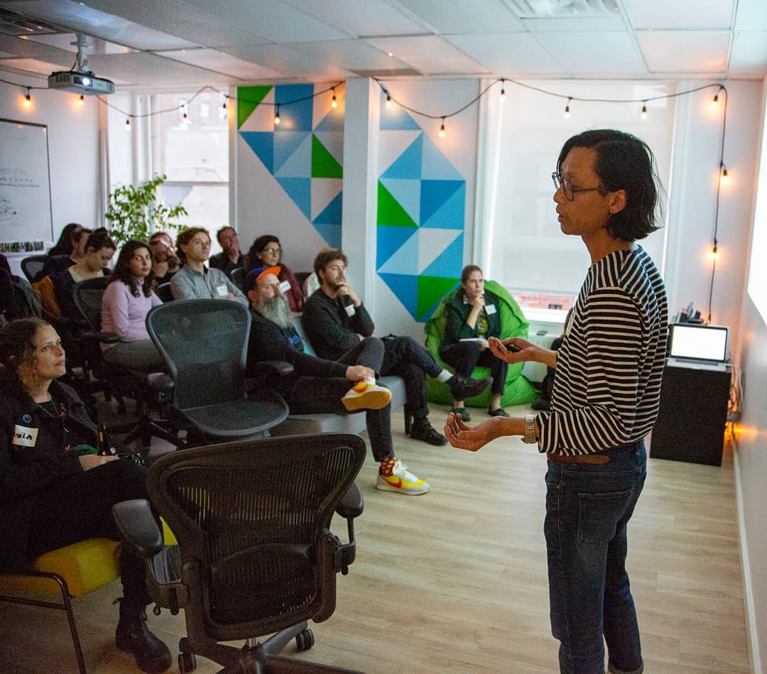 J'aime sentir que j'orchestre les projets sur lesquels je travaille de manière à ce qu'ils soient en phase avec mes valeurs et celles de mon équipe. Je me sens libre de communiquer et de donner mon avis quand je vois une opportunité ou un risque. Toute l'équipe alimente activement la structure horizontale et met l'emphase sur le respect et l'humilité. J'apprends beaucoup, de bout en bout